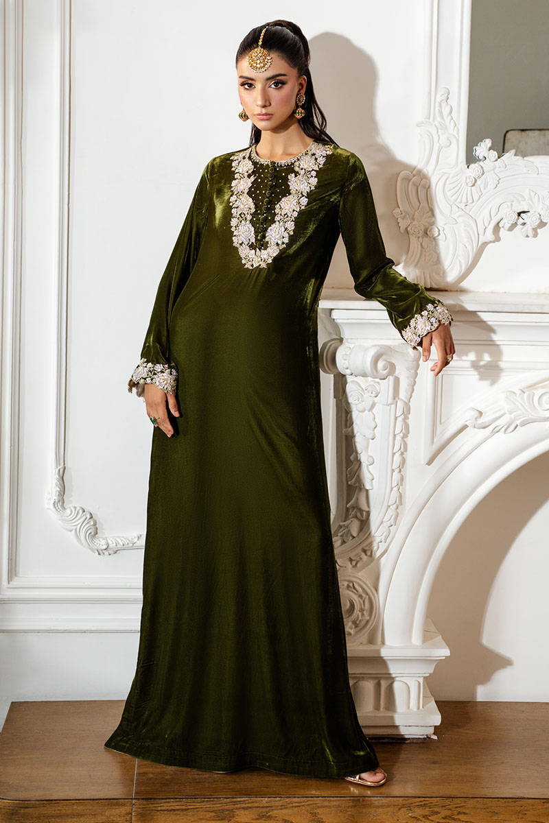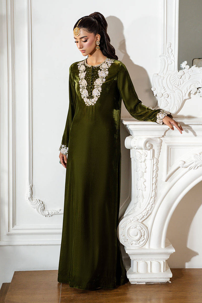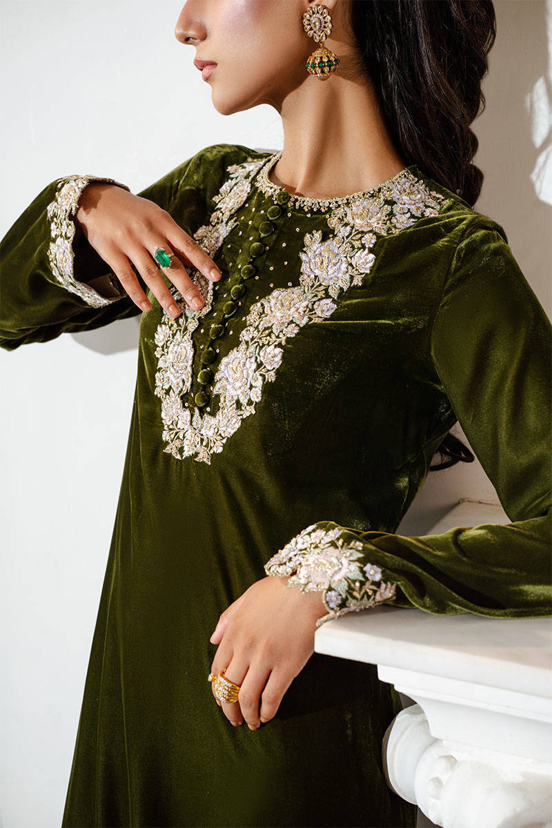 Dusty Olive is a show-stopping kaftan shirt featuring intricate hand-embellished and embroidered detailing along the neckline and sleeves. Effortlessly elegant and timelessly chic, this statement piece is perfect for any special occasion.