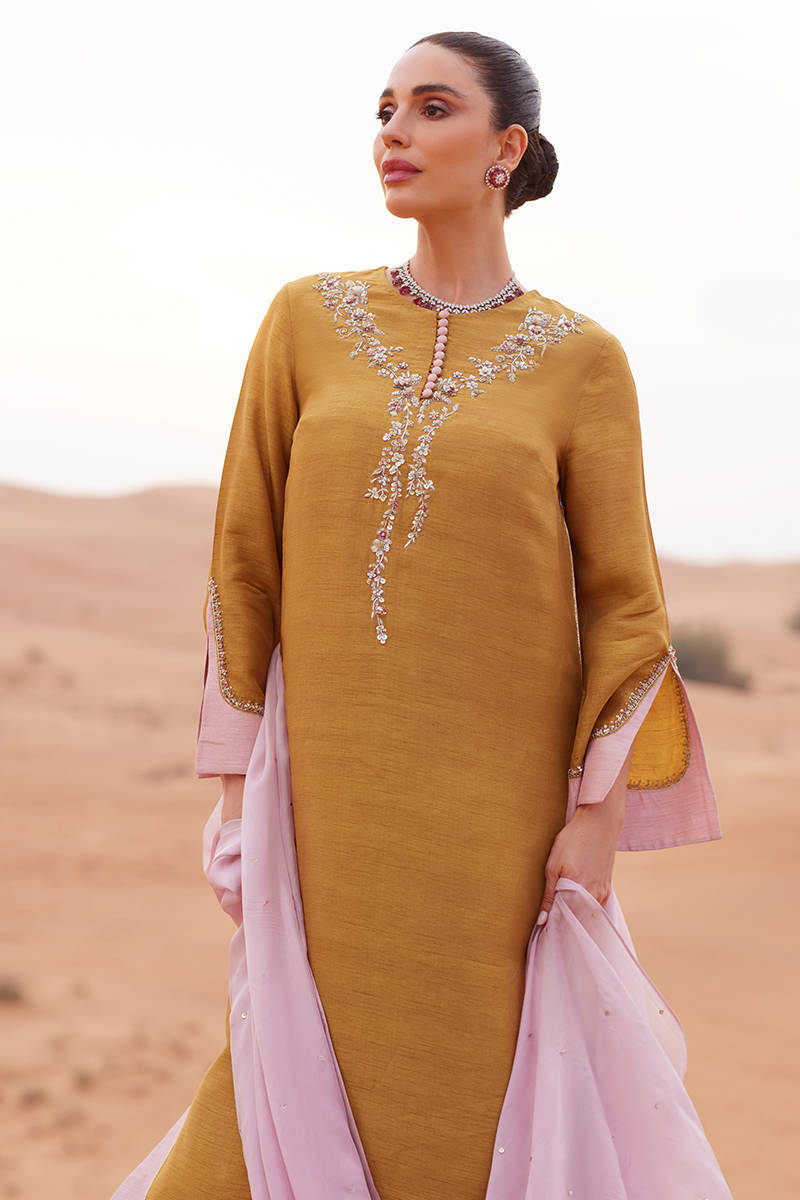 Color: Mustard Fabric: Shirt: Korean Silk, Pants: Korean Silk, Dupatta: KP Silk